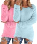 2 Pieces Crochet Jumper Chunky Jumpers for Women Fleece Lined Sweatshirts