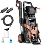 Pressure Power Washers with Hose Reel,Foam Cannon and Adjustable Nozzles,Area Coverage: 50㎡/h,Pressure:max.145 bar,Flow Rate:420 l/h,High Pressure Washer for Cars,Fences,Patios,Patios and Driveway