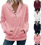 Name:Hoodies for Women UK Drawsring V Neck Jumpers Hooded Long Sleeve Sweatshirts Solid Color Pocket Cable Knitted Pullover Autunm Winter Loose Sweaters;