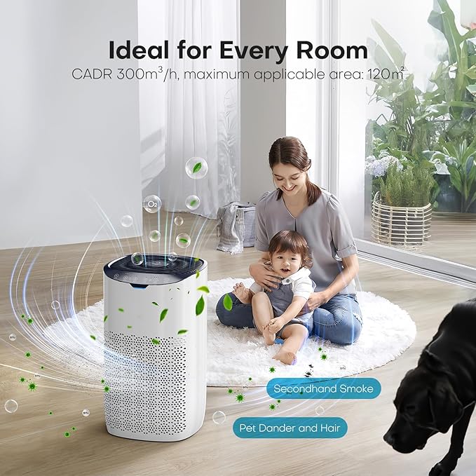 Product name: Air Purifier for Bedroom Home 120㎡, CADR 300 m³/h, Air Quality Sensor, Auto Mode, Quiet 25db, Prevents Pollen, Dust, and Pet Hair,