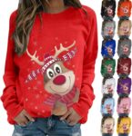 Christmas jumpers for women Ugly Long Sleeve Elk Print ladies Jumper plus size Sweatshirt Xmas Pattern tops Casual funny Comfortable Light novelty Clothes outfits