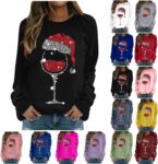 Name:Christmas Jumpers for Women Uk Glitter Xmas Printed Sweatshirt Long Sleeve Crewneck Sweaters Winter Oversized Pullover Novelty Funny Graphic Tops;