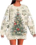 Christmas Jumpers Women Funny Christmas Tree Printed Jumper Plus Size Novelty Xmas Oversized Sweatshirts