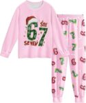 Christmas Pjs 67 Meme Pyjamas Set Sleepwear Six Seven Number 6 7 Christmass Long Sleeve Pjs Jumper 2025 Tops and Pants 2 Piece Outfit