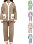 Fleece Pyjamas Women, Fluffy Pyjamas Sets Soft Warm Lounge Wear Set Long Sleeve Button Tops And Pants Ladies 2 Piece Fluffy Pjs Sets Loungewear Nightwear Sleepwear With Cute Bow Pockets One Size