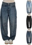• [Straight Leg Jean with Rhinestones]:These women’s jeans have a high waistband and a straight cut that accentuates the waist and visually lengthens the legs. Sparkling rhinestones add a touch of glamour.