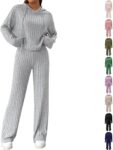 Name :Lounge Wear Sets for Women Uk Tracksuit Full Set Wear 2 Piece Knitted Outfit Oversized Long Sleeve Solid Color Tops Wide Leg High Waist Trousers Pants Cosy Pyjamas Holiday Dailywear