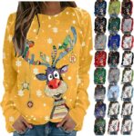 Nuoke Christmas jumper,Christmas jumpers for women,Ugly Long Sleeve Elk Print hoodie plus size Sweatshirt tops Casual funny Comfortable Light