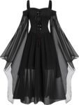 - This dress blends dark lace and flowing fabric, ideal for Halloween parties, gothic themed events, or cosplay. The high and dramatic sleeves create an enchanting silhouette. Works for or gatherings too—versatile for and occasions.