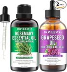 Rosemary Oil for Hair Growth,100% Pure & Natural Rosemary Essential Oil,Grapessed Oil for Skin & Hair Care & Eyelash Eyebrows Growth,Non-Greesy Hair Growth Oil/Serum Hair Loss Treatment for Women(2