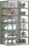 SONGMICS Shoe Boxes, Pack of 12 Stackable Shoe Storage Organisers, Foldable and Versatile for Sneakers, Fit up to UK Size 9, Transparent and Sage Green LSP12SG30