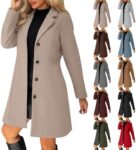 Trench Coats For Women Wool Blend Single Breasted Trench Coats Windproof Thicken Warm Pea Coats Lapel Collar Button Down Mid-Length Overcoat Solid Elegant Outwear Fall Winter Jackets