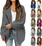 Womens Knitted Cardigans Lightweight Long Knit Sweaters Elegant Aran Cable Knit Open Front Jumper Top Fashion Fall Jumpers Grandad Cardigan Leisure Long Sleeve Sweater Plain Autumn Tunic Blouses